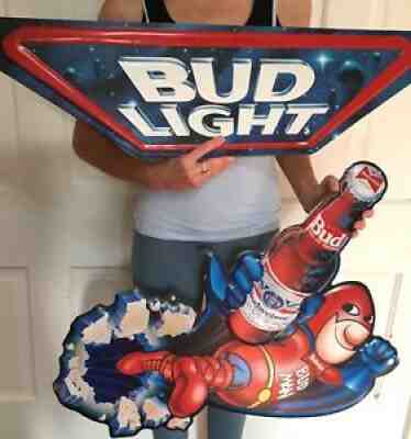 Vtg Budweiser Budman Hanging Budweiser Bud Lite Signs Lot Pair super hero